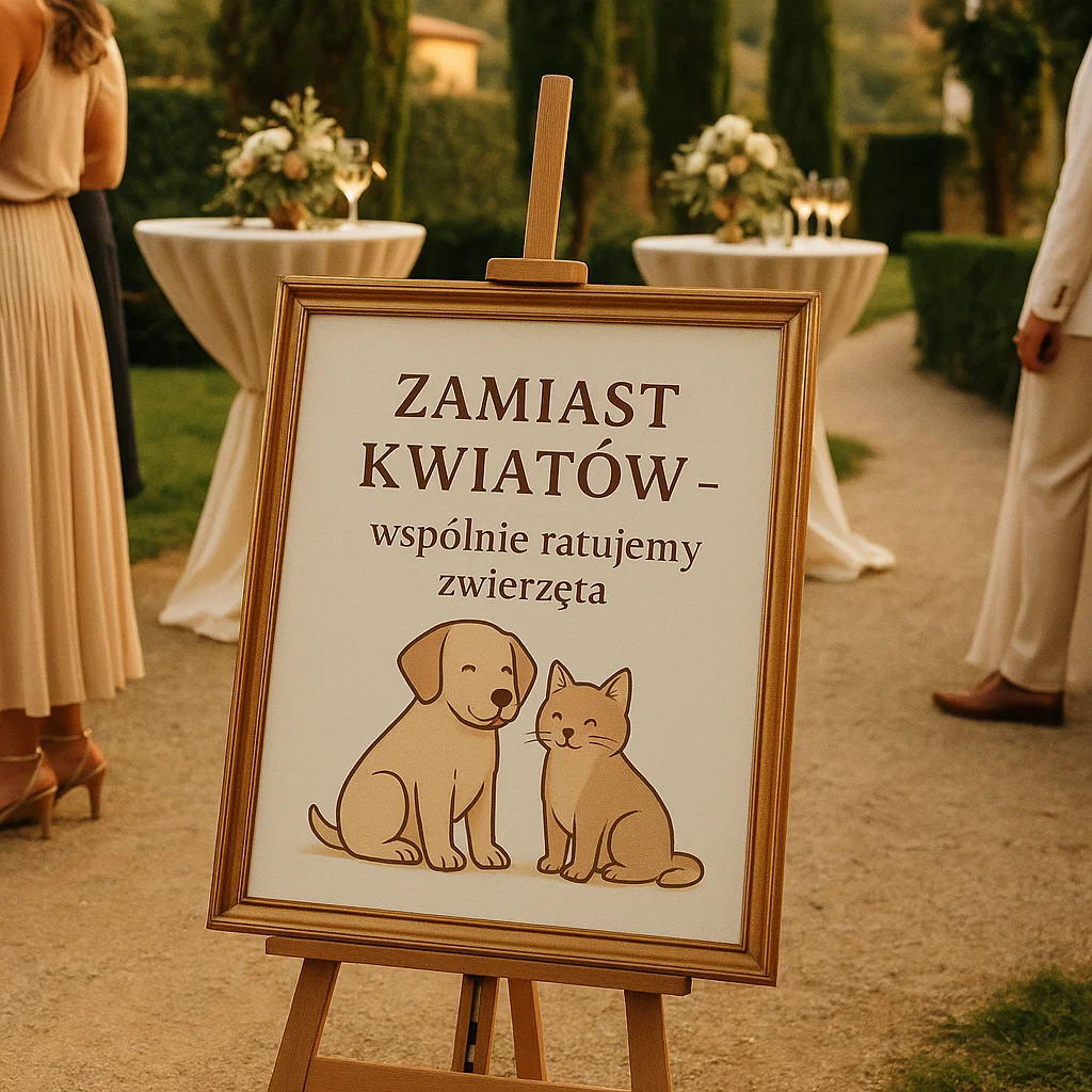 Jeśli w dniu ślubu planowaliście nas obdarować kwiatami, zamiast nich prosimy o wsparcie celu, który jest nam szczególnie bliski – ratowanie zwierząt.